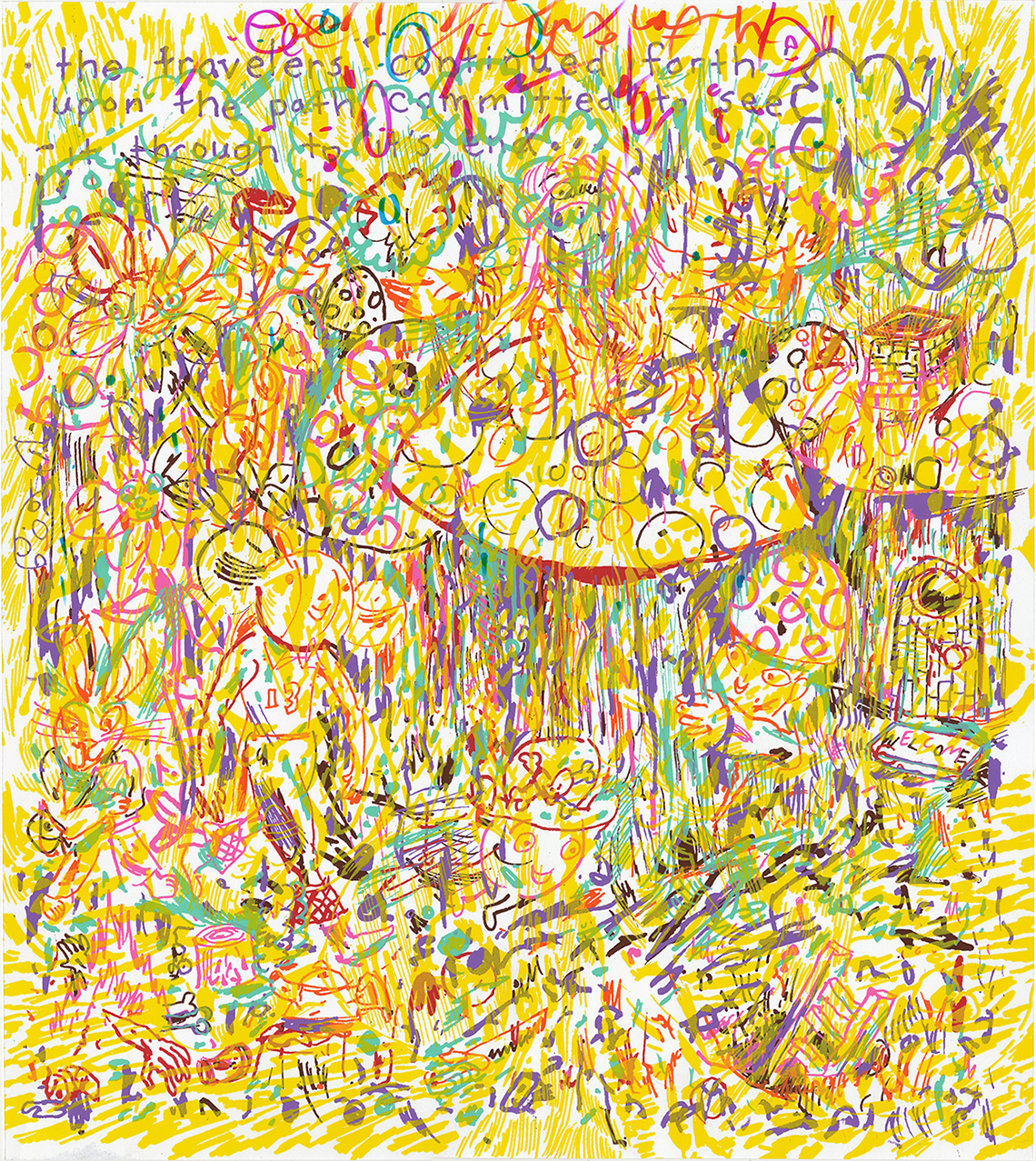7 color silkscreen. 21.5"H x 19"W. There are zero from the numbered edition of 65 left but there is this 1 slightly different (different yellow layer, little bit of marker drawing, close cropped) artist proof left. Features "If'n Oof", 2 characters featured in their own "graphic novel" (available elsewhere). Printed in October 2011. Designed and handprinted by Brian Chippendale.
