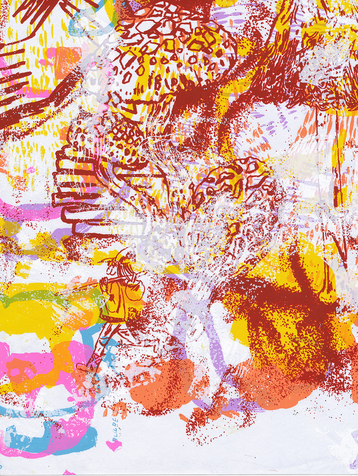 Small unique mash-up silkscreen print. 11" H x 8.5" W. Signed. 2014. By Brian Chippendale. Ships flat.