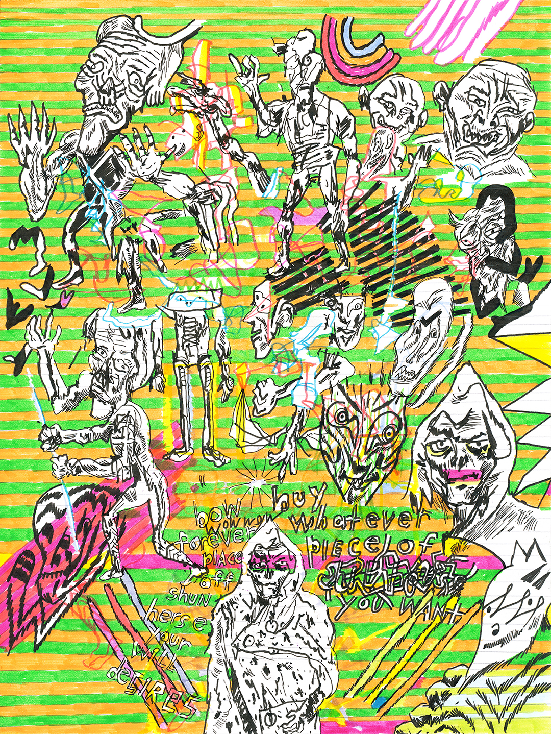 india ink drawing with markers and pencil on paper. 11" x 8.25". 2017 by Brian Chippendale. Ships flat.