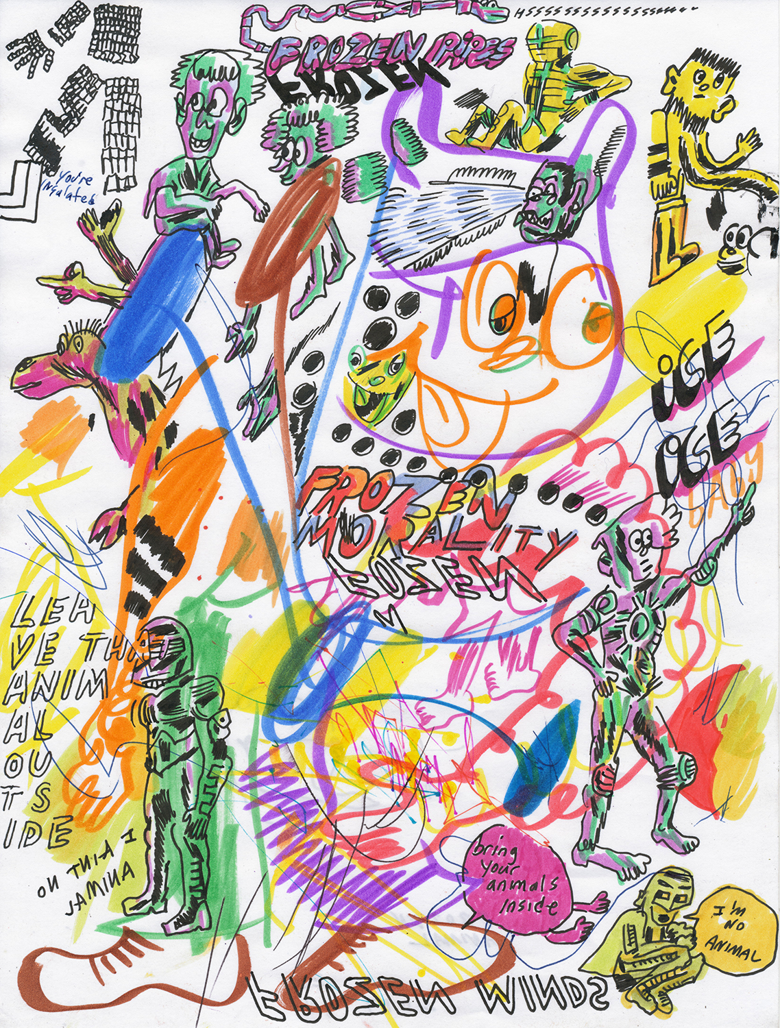 unique drawing on paper with ballpoint pen, marker, india ink and pencil. 11" x 8.25". 2017-18 by Brian Chippendale