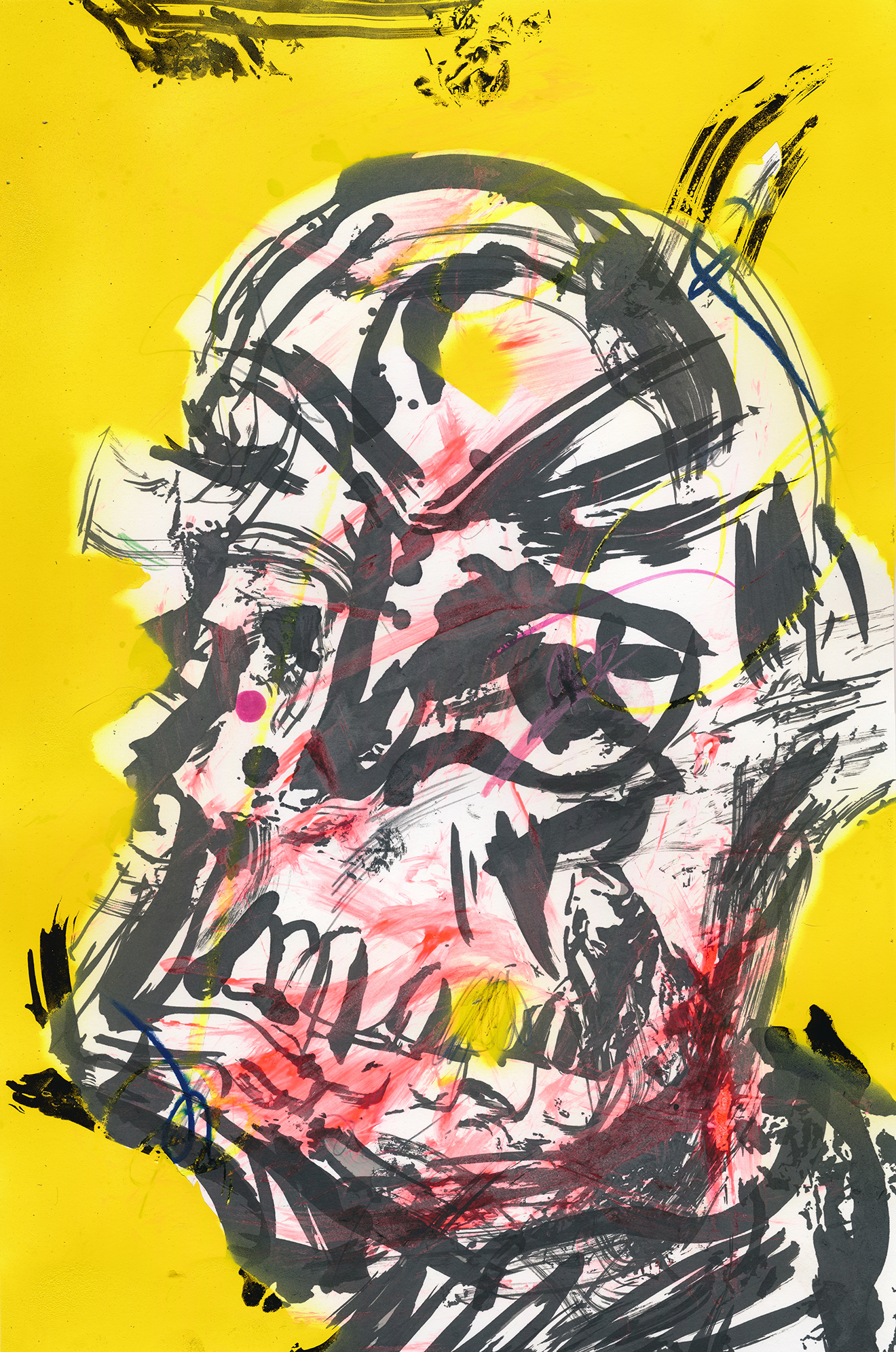 wizard drawing on paper with ink, crayon, pencil and spraypaint. 18"H x 12"W. by Brian Chippendale, 2018