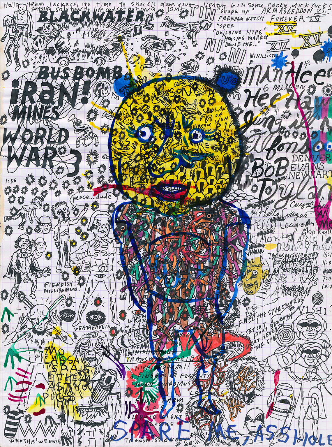 Vintage 2007-2009ish many colored unique ink and marker drawing. Buried politics. 8.25W x 11"H. Drawn by Brian Chippendale.