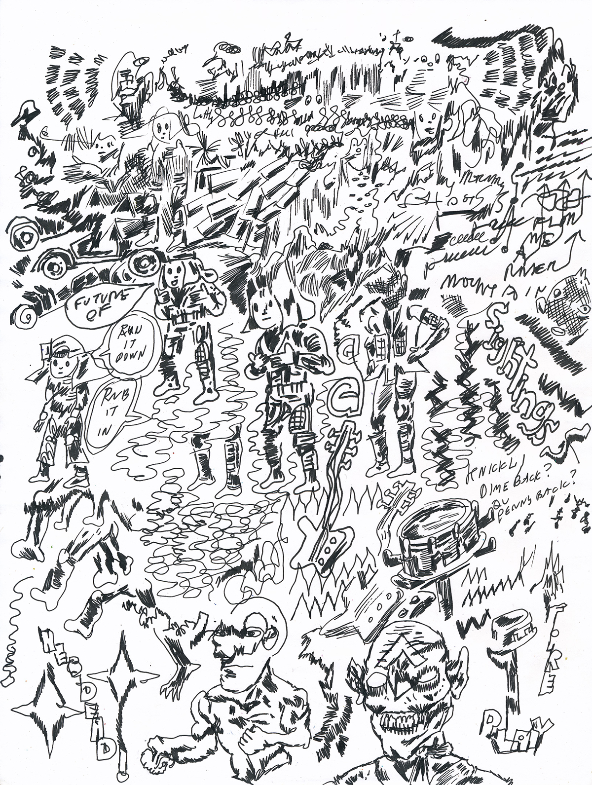 drawing on paper with india ink. 11"H x 8.25" W. Drawn by Brian Chippendale, 2019