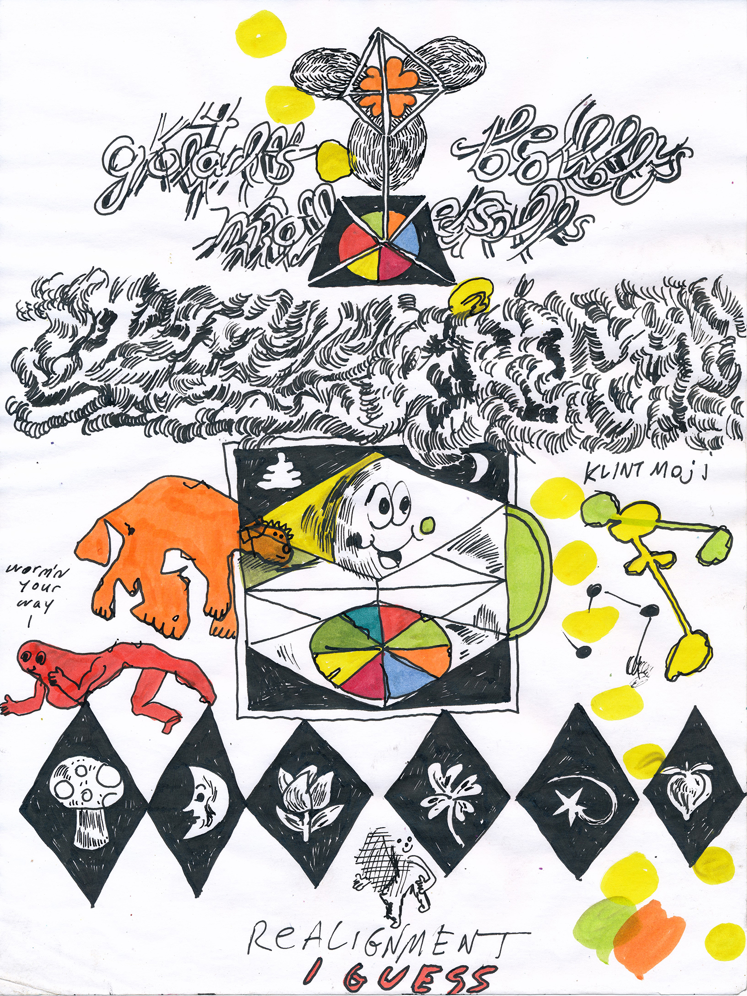 drawing on paper with india ink and marker. 11"H x 8.25" W. Drawing from drawings by Hilda AF Klint. Drawn by Brian Chippendale, February 2020