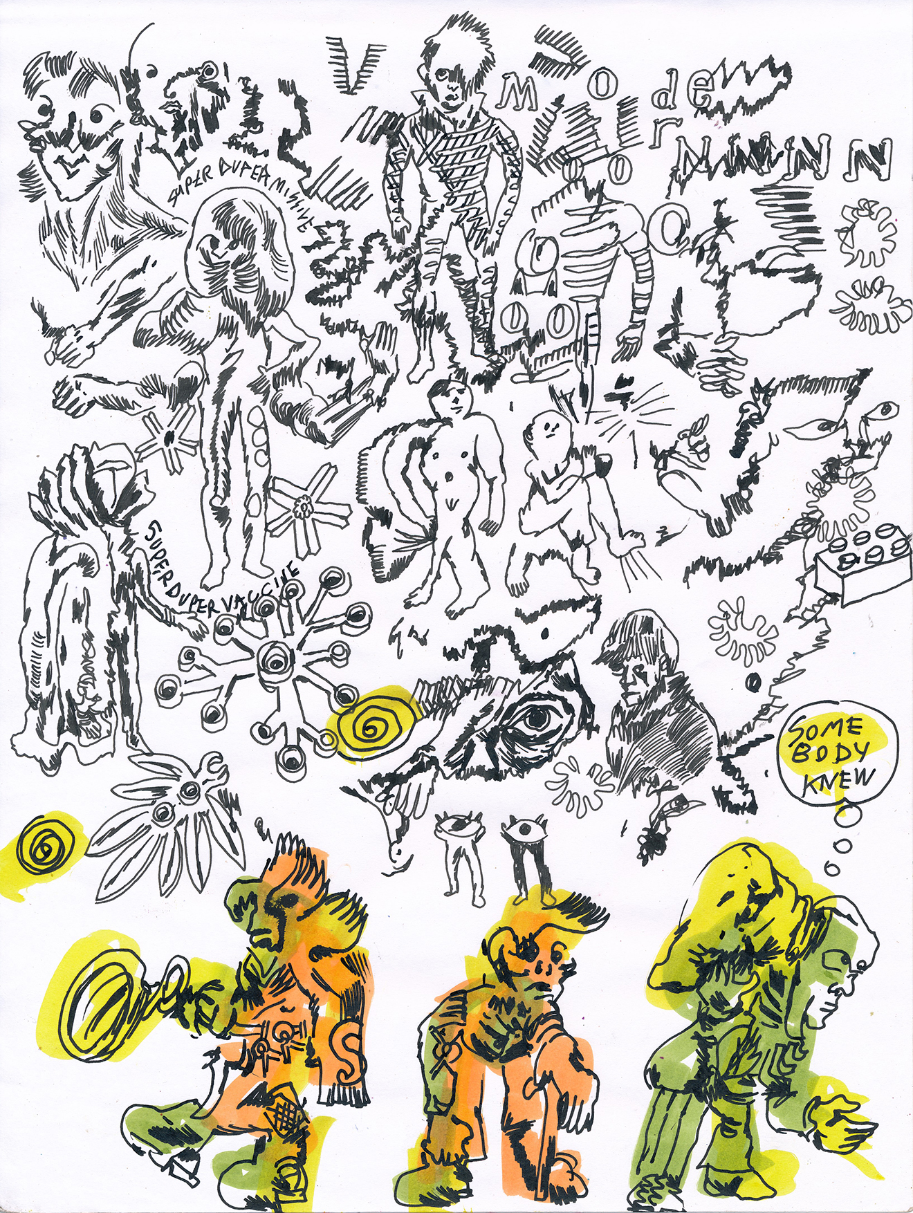 India ink and marker drawing on paper. 8.25H x 11"W. Drawn by Brian Chippendale 2020