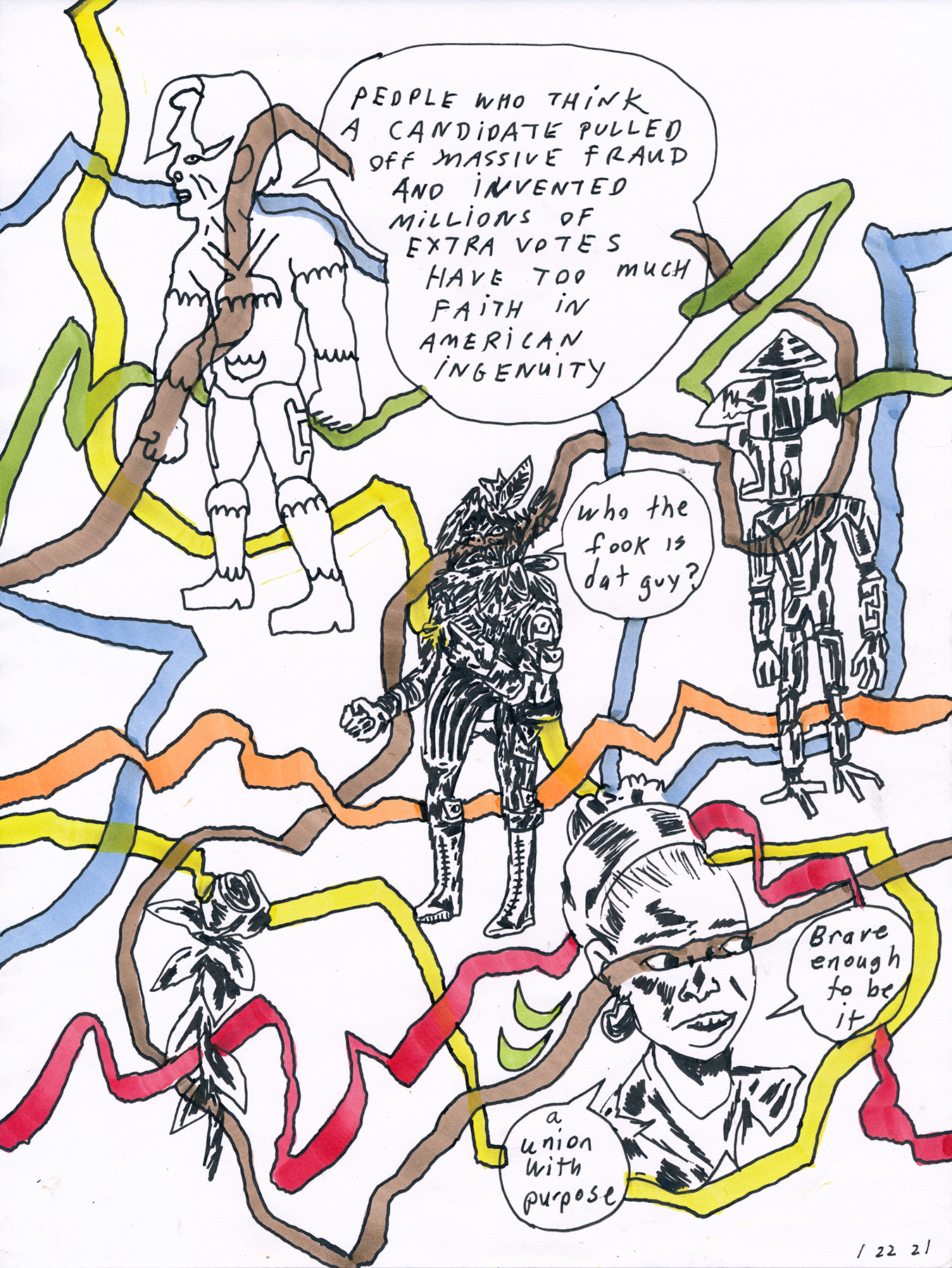 India ink and marker drawing on paper. 8.25H x 11"W. Drawn by Brian Chippendale 2021