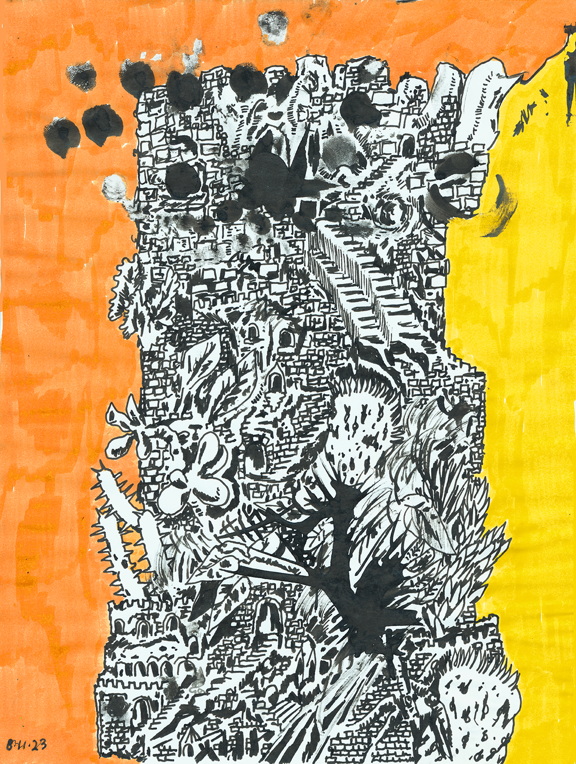 India ink drawing with marker on paper. 8.25H x 11"W. Drawn by Brian Chippendale while re-listening to the OG Earthsea trilogy. 2023.