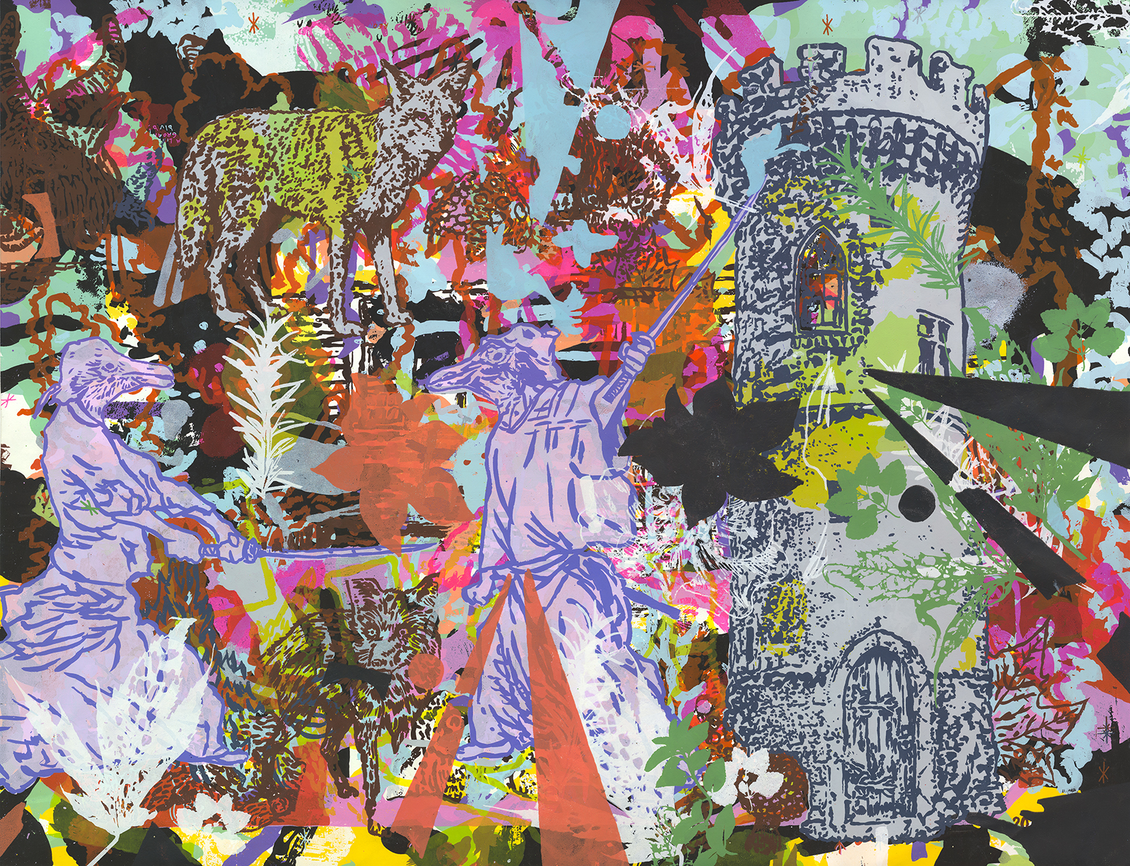 a many many many colored one-of-a-kind silkscreen mashup. 23"W x 17.5"H. Built up over time by printing various layers from my silkscreened editions. Undesigned(but its signed!) and handprinted by Brian Chippendale. 2020-2023