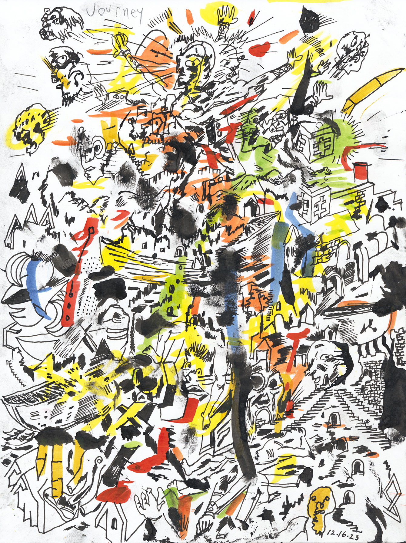 India ink drawing with marker and pencil on paper. 8.25"H x 11"W. Drawn by Brian Chippendale. 2023.