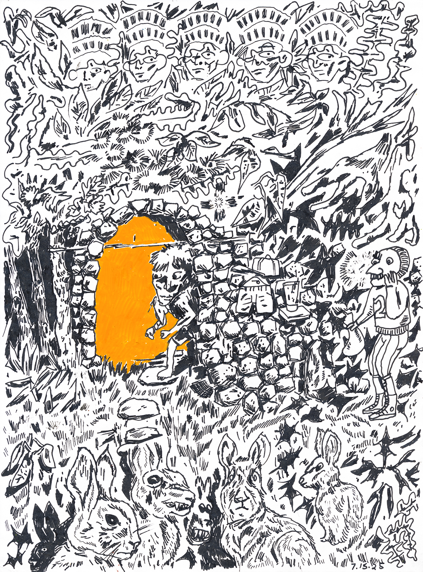 India ink drawing w marker on paper. 8.25"H x 11"W. Very cute. Drawn by Brian Chippendale. 2025