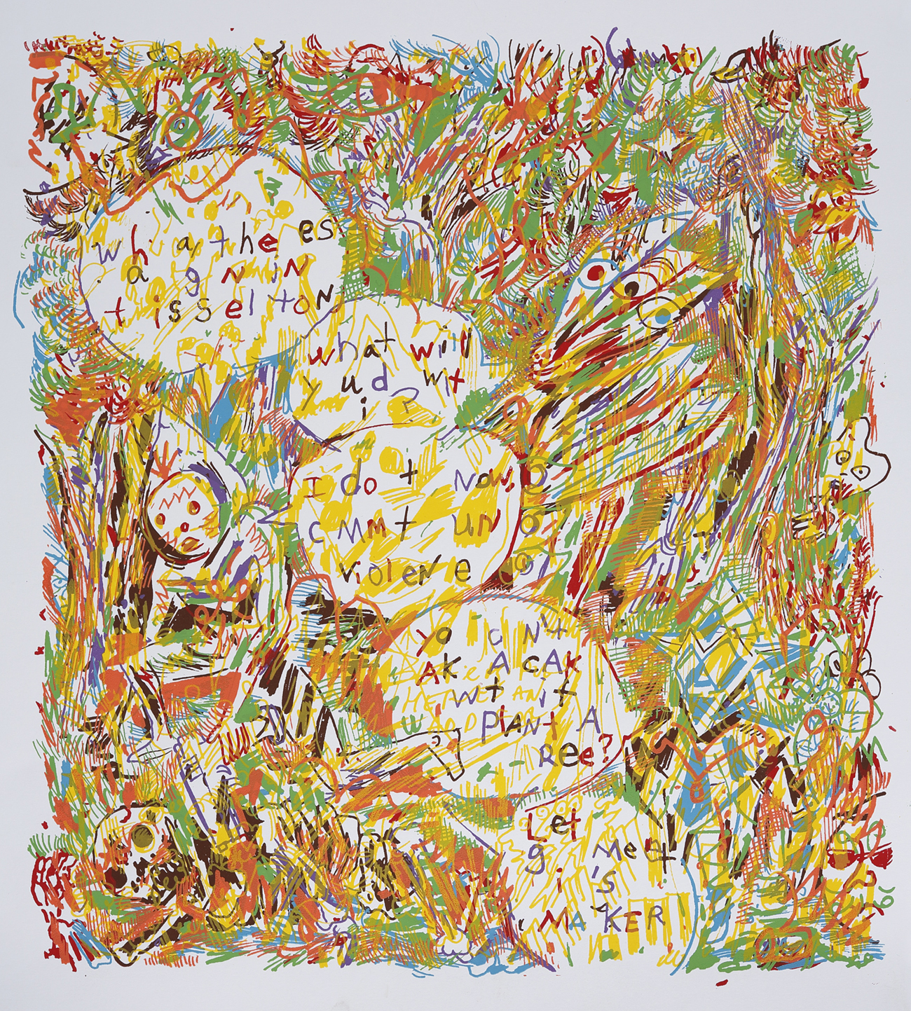 7 color silkscreen. 22"H x 20"W. 1 available from the numbered edition of 40. Printed in 2013. Designed and handprinted by Brian Chippendale.