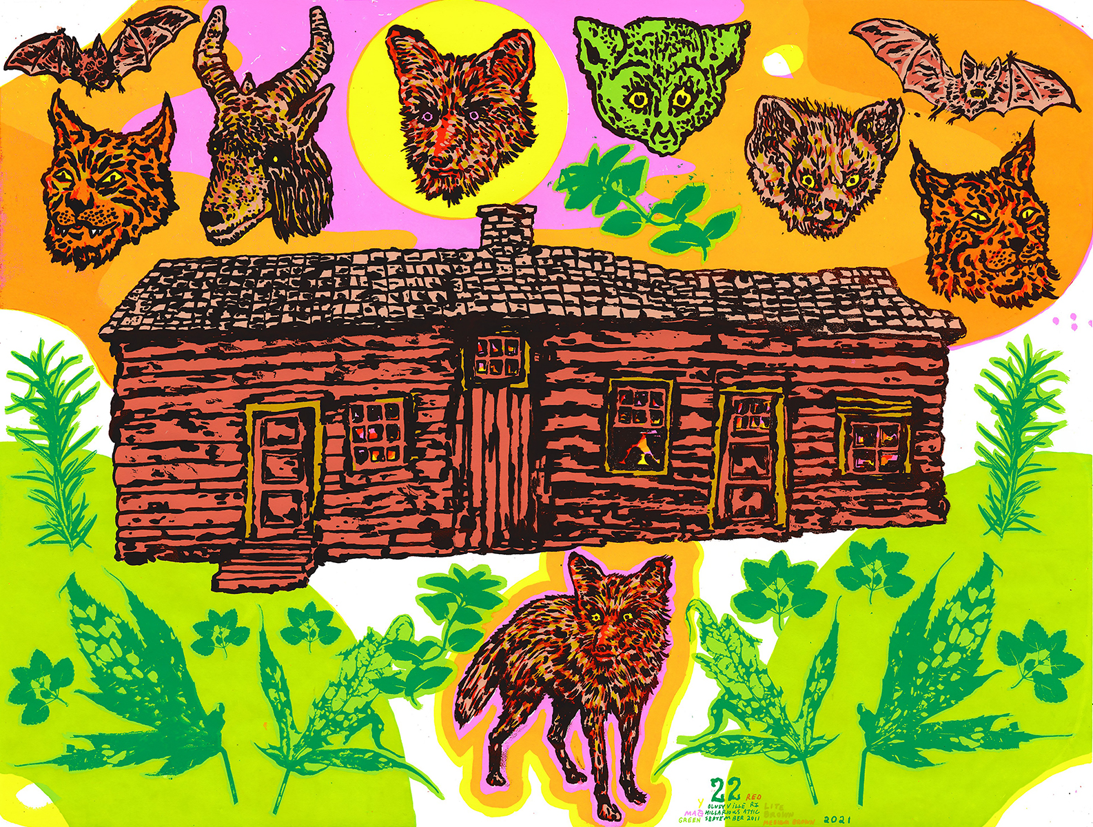 8 color silkscreen. 19"H x 25"W. This is the fourth printing in an edition of 25. There are now about 195 copies (total, edition and artists proofs) printed of this starting with the 2011 run. Printed in August 2023. Designed and handprinted by Brian Chippendale.