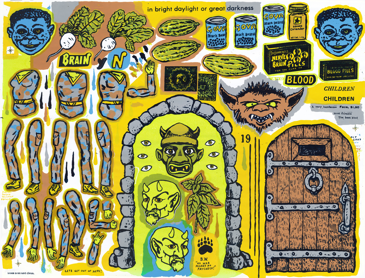 7 color silkscreen. 19"H x 25"W. edition of 60 copies. Printed in October 2007. Designed and handprinted by Brian Chippendale.